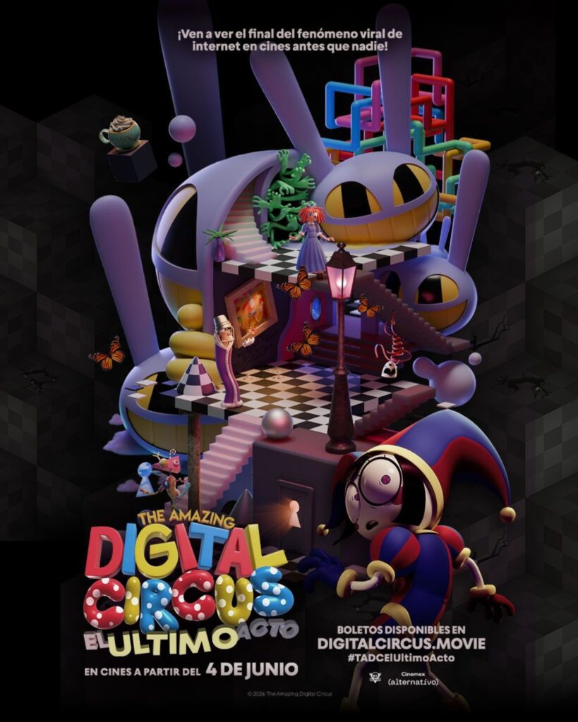 The Amazing Digital Circus es la película que llega a Cinemex este verano como parte de sus proyecciones exclusivas. El final de este fenómeno viral de internet estará en la pantalla grande, lo que le dará ese toque especial a la historia en su último episodio después de su estreno en 2023.